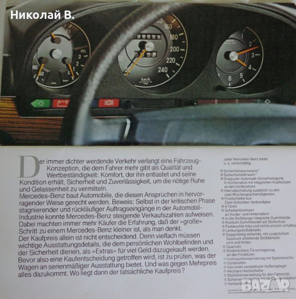 Ретро Рекламен проспект на автомобил Мерцедес Бенц Die Personenwagen Von Mercedes-Benz Program 1977 → Обява 37284343