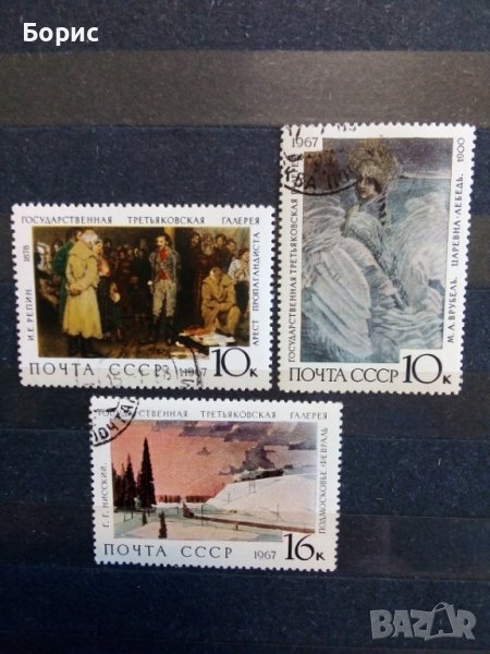Комплектна серия изобразяваща картини на известни художници от изложба в Третяковската галерия в Москва . Марките са с качество за колекционери , не са пътували и са с оригинално много добре запазено лепило . На другите снимки разгледайте серията на части .