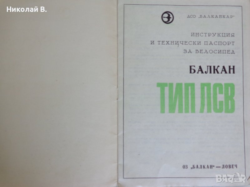 Инструкция и технически паспорт за велосипед Балкан ТИП ЛСВ 18 " ОЗ ,,БАЛКАН " - ЛОВЕЧ 1974 година → Обява 37286726