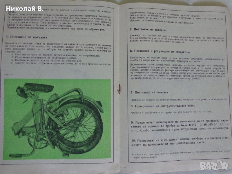 Продавам инструкция и технически паспорт за велосипед Балкан ТИП ЛСВ 18 " Износител ДТП ,,АВТОИМПЕКС" - София. Проиводител ОЗ ,,Балкан "- Ловеч 1974 година. Съдържа 22 страници Състоянието и е видно от снимките Цена 199 лв.