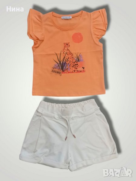 Нежна тийн блузка с къс ръкав и с къдри, в оранжев цвят с апликация на леопард 🐆 Налични размери: 128 см, 134 см, 140 см, 146 см, 152 см, 158 см и 164 см 🛍️ За още моделчета разгледайте и останалите обяви в профила ми.