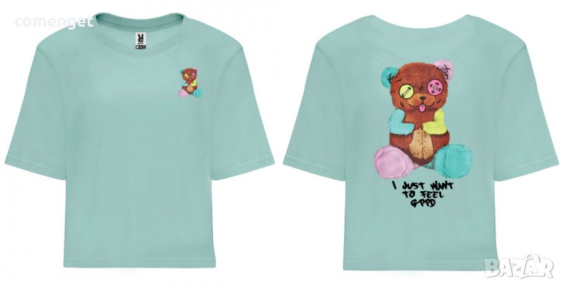 Дамски тeниски, кроп топ налични размери от S до 4XL с FEEL GOOD BARROW BEAR принт. Блузите са изработени е от 100 % памук с нова печатна технология!
