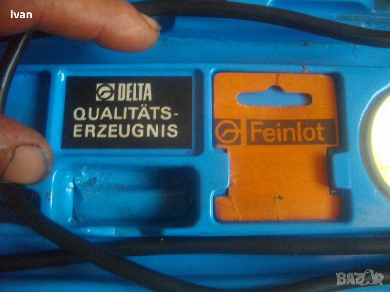 Силен и мощен,бързо нагряващ,удобен поялник за запойки.Немско оригинално производство. Марка и модел-Delta G40.Инструмента работи на 220 волта,малко ползван,с много запазен външен вид и отлично техническо състояние.Човка-работна ширина 8мм.В комплекта има оригинална малка кутия метална,пълна с оригинален колофон. Поялника е прибран в оригиналната си немска кутия.Корпуса на инструмента е твърда трудно запалима бакелитова пластмаса.
