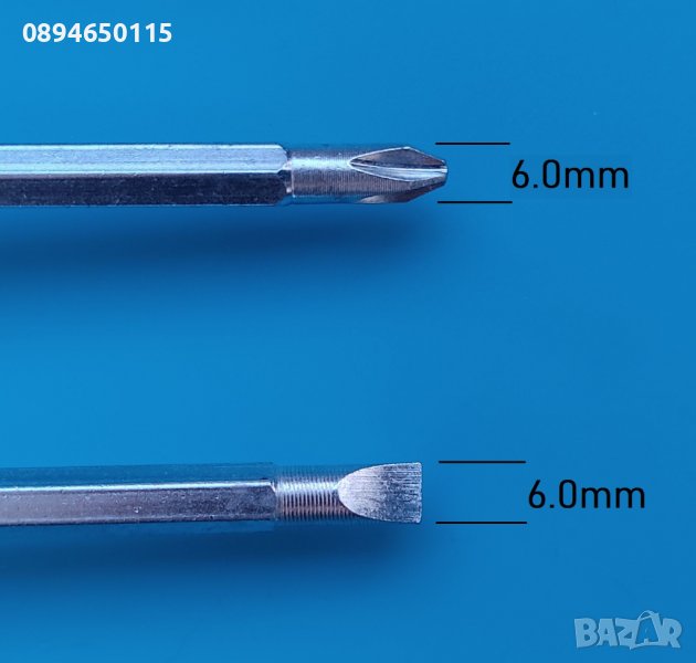 Отвертка комбинирана 2в1, кръстата, права, намагнитен връх, 6x100mm отверка → Обява 37298992