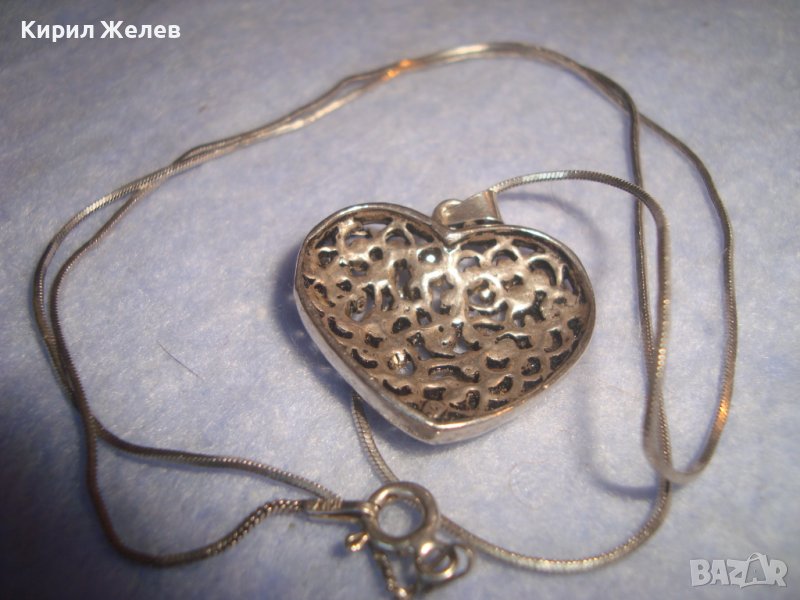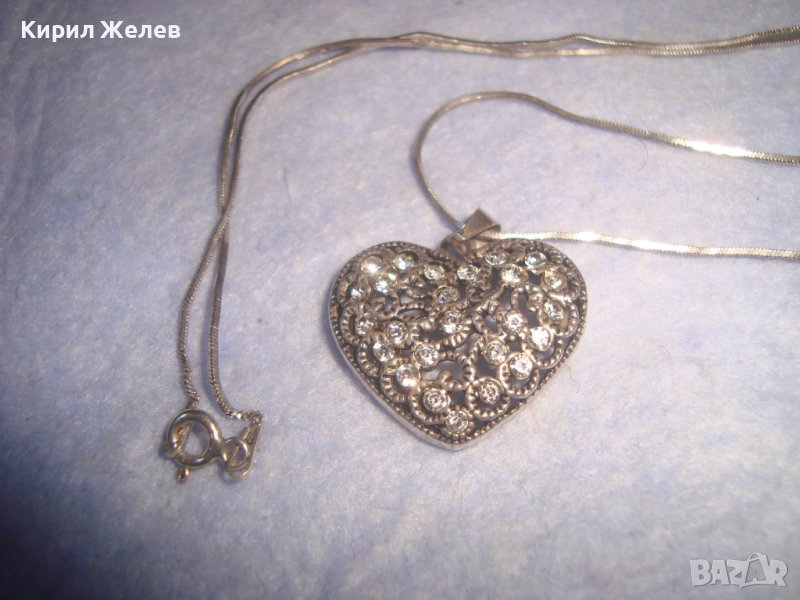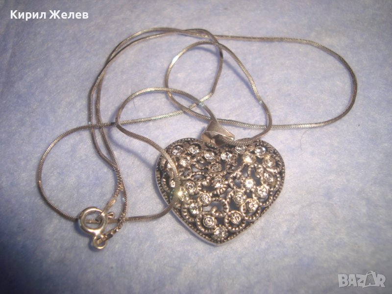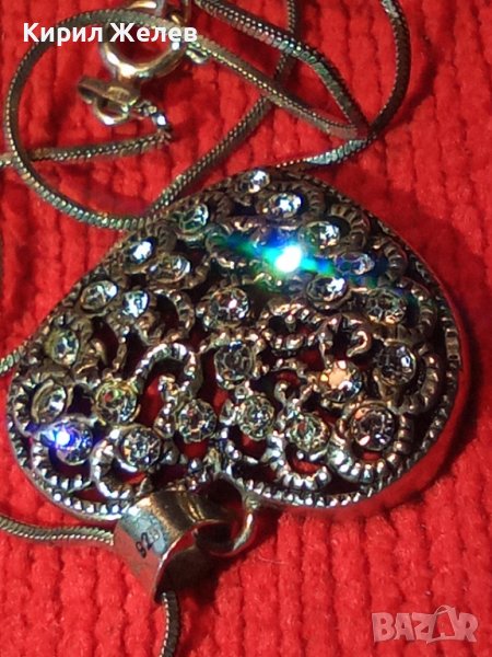 СЪРЦЕВИДЕН СКЪПОЦЕНЕН СРЕБЪРЕН АРТ МЕДАЛЬОН КОЛИЕ СТЕБРО 925 ИТАЛИЯ с ИНКРУСТИРАНИ ЦИРКОНИ 28711