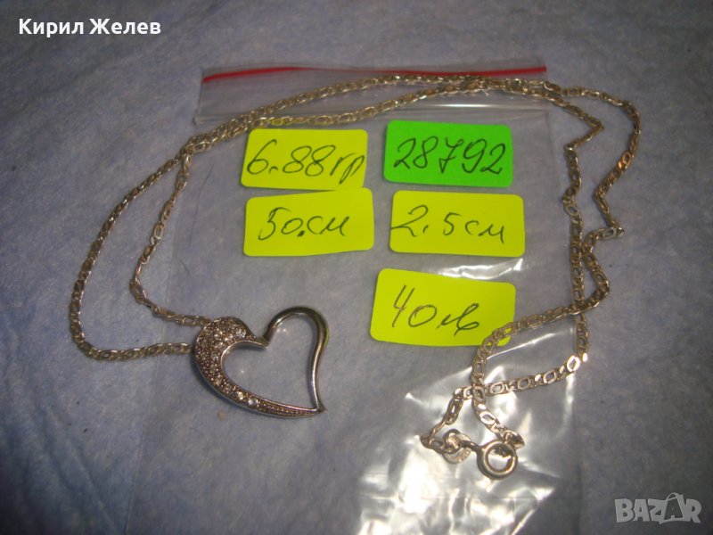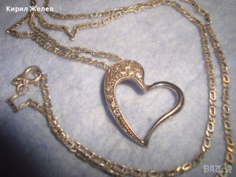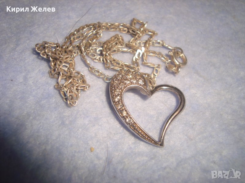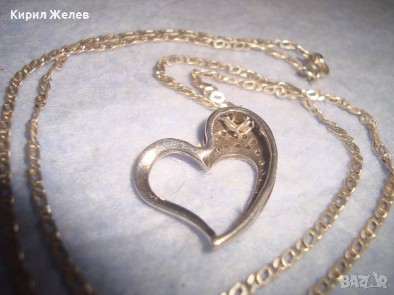 СЪРЦЕВИДЕН СКЪПОЦЕНЕН СРЕБЪРЕН МЕДАЛЬОН с БЯЛА ПОЗЛАТА и СРЕБЪРНО СИНДЖИРЧЕ СРЕБРО 925 КОЛИЕ 28792