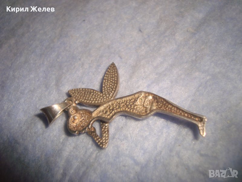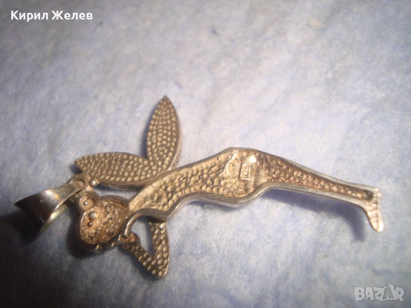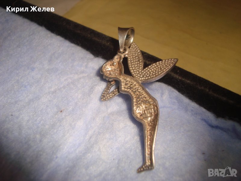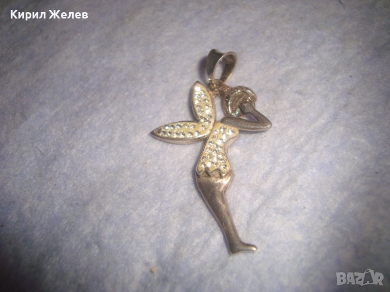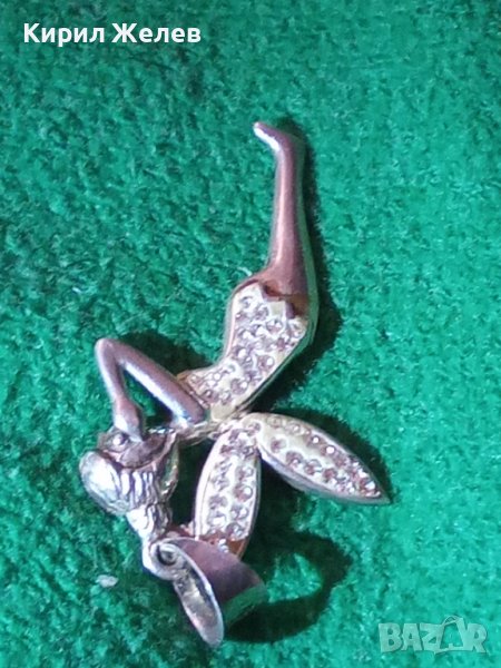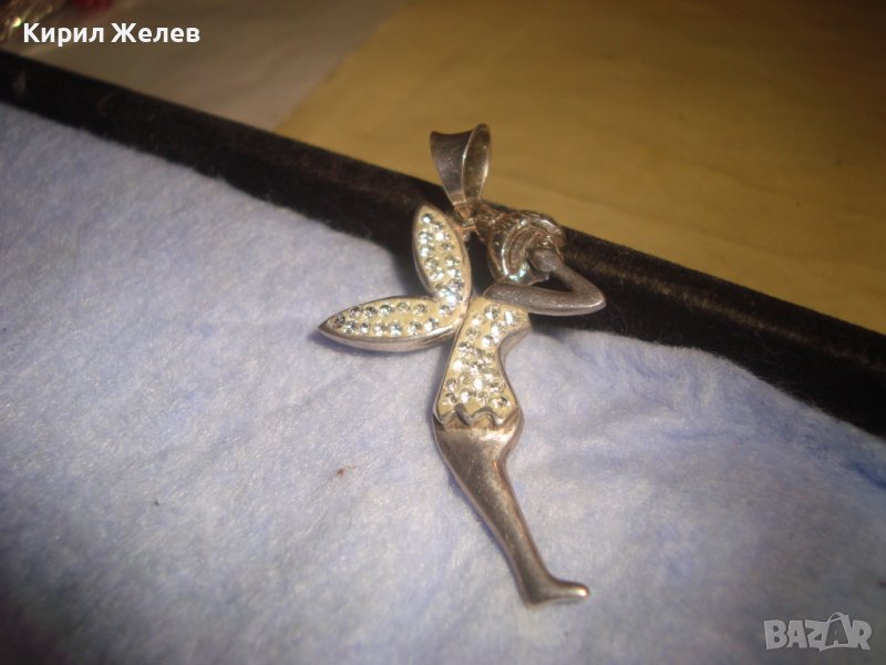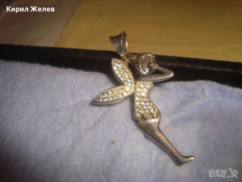 НЕЖЕН ФИГУРАЛЕН АРТ ДЕКО МЕДАЛЬОН - ФЕЯ СРЕБРО 925 ИНКРУСТИРАН с БЛЕСТЯЩИ КРИСТАЛЧЕТА 28762