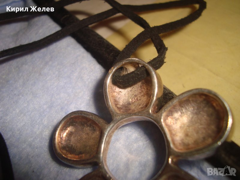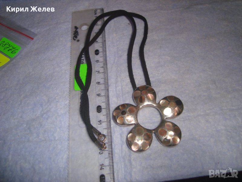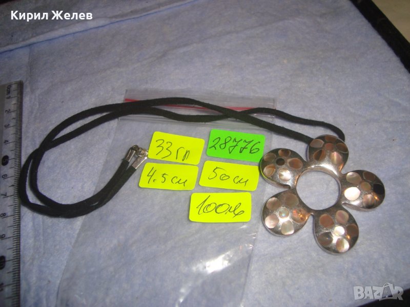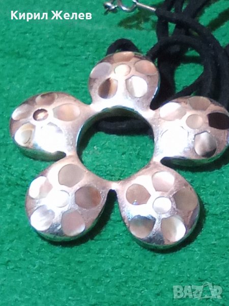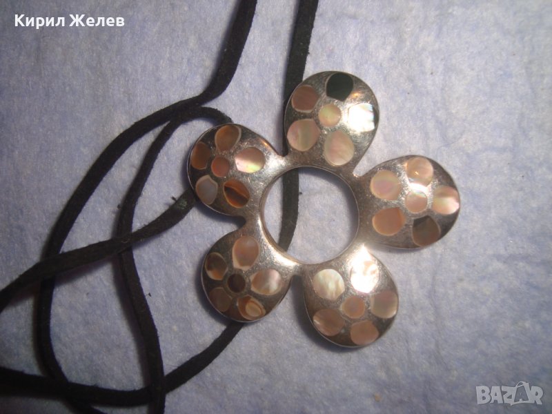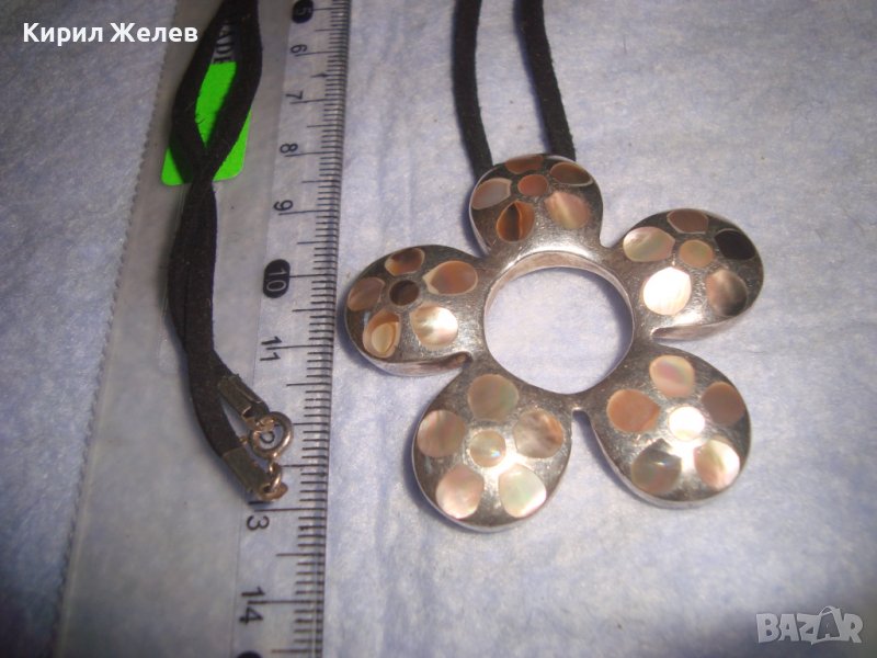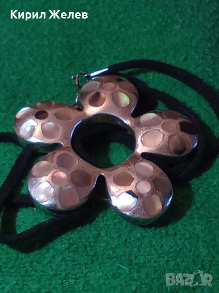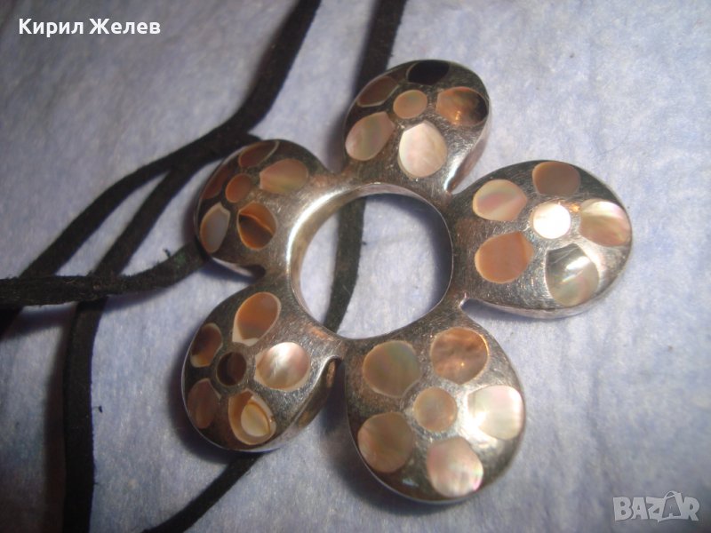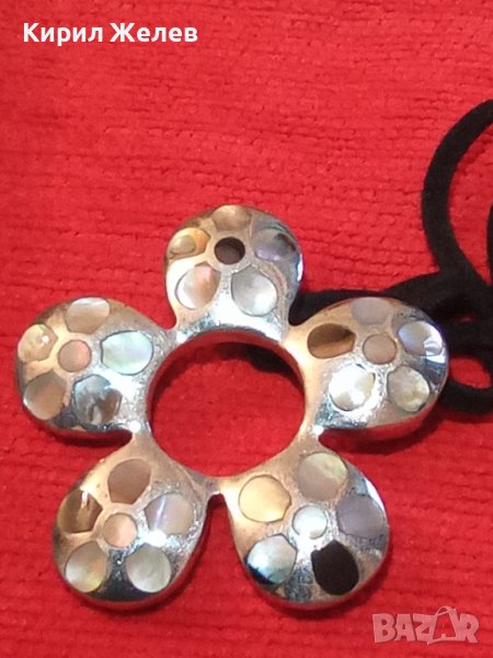 МАСИВЕН СРЕБЪРЕН СЕДЕФЕН ФЕШЪН АРТ МЕДАЛЬОН СРЕБРО 925 ИТАЛИЯ ИНКРУСТИРАН КРАЛСКИ СЕДЕФ КОЛИЕ 28776