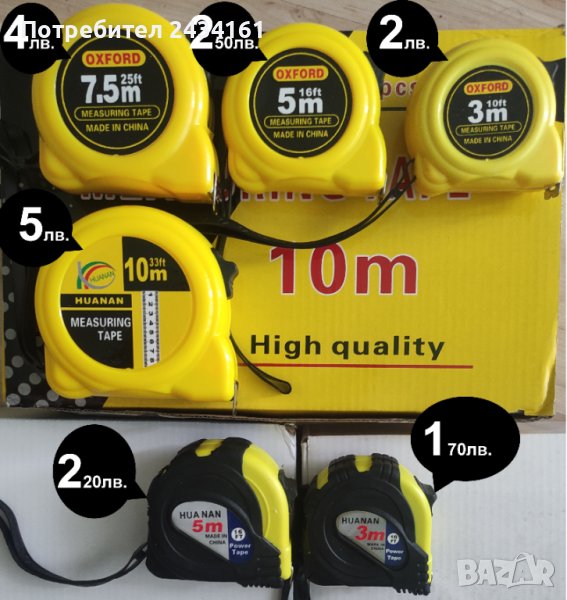 Рулетки -3,5, 7, 10 метра - 2, 2,50 , 4,50 , 5лв.
