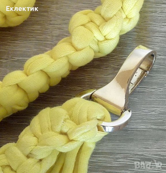 свалят. Каишът е изплетен от прежда-трико в патешко жълт цвят с редуващи