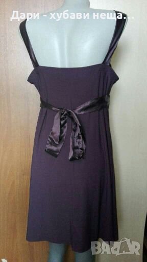 Нова, без етикет.Материята е полиестер с еластан - пада тежко и не се мачка.Бюстието е с вградени подплънки.Цветът е тъмно лилав и на снимките е излязъл точно.