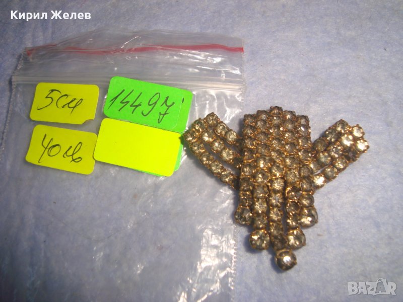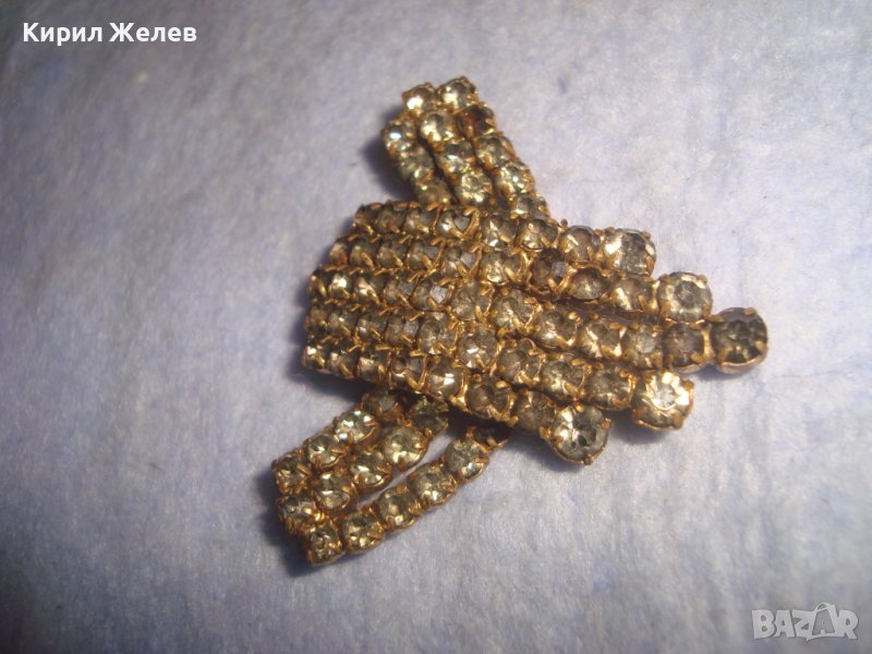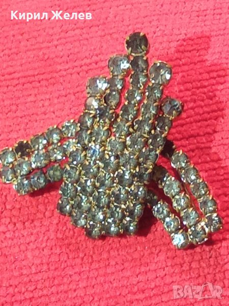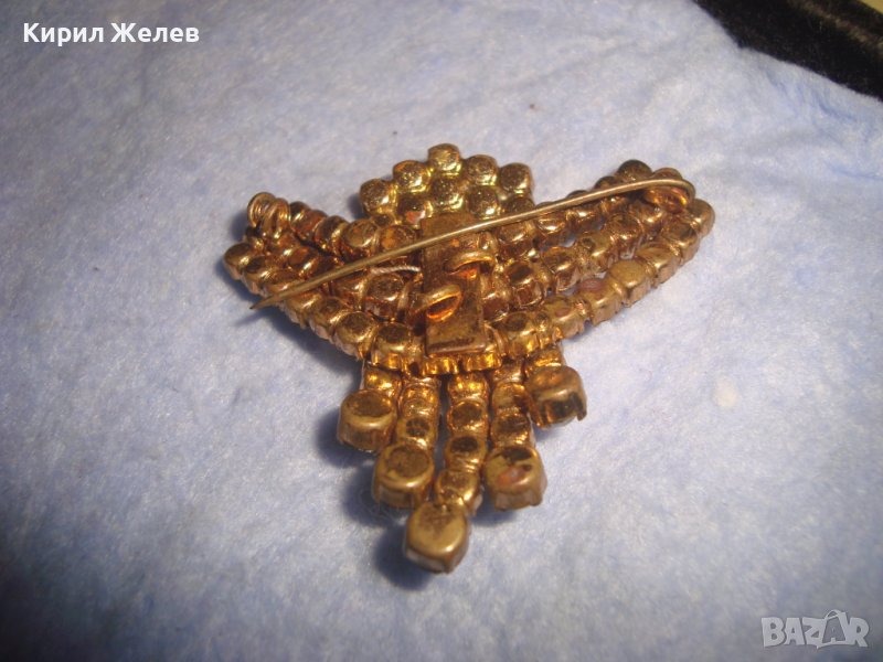 СТАРА ПОЗЛАТЕНА РЕТРО АРТ КРИСТАЛНА БРОНЗОВА БРОШКА с БОХЕМСКИ КРИСТАЛИ МАЙСТОРСКА ИЗРАБОТКА 14497