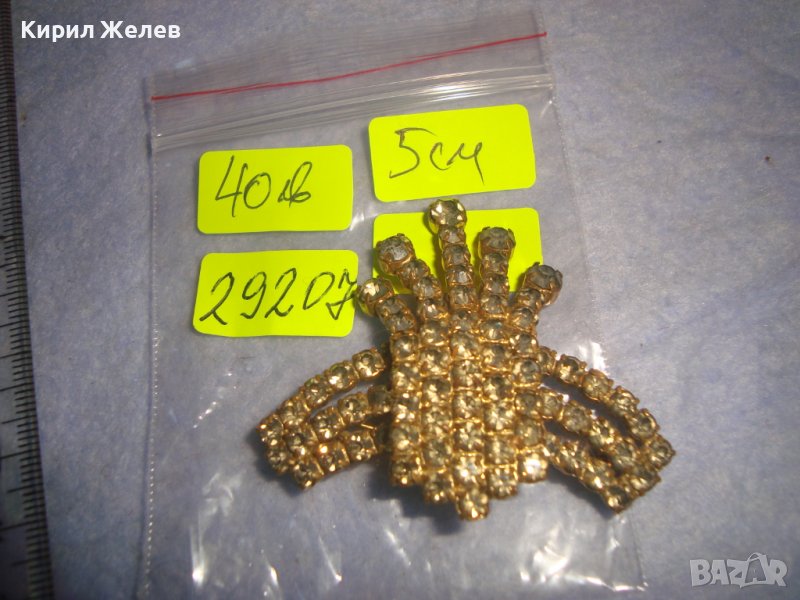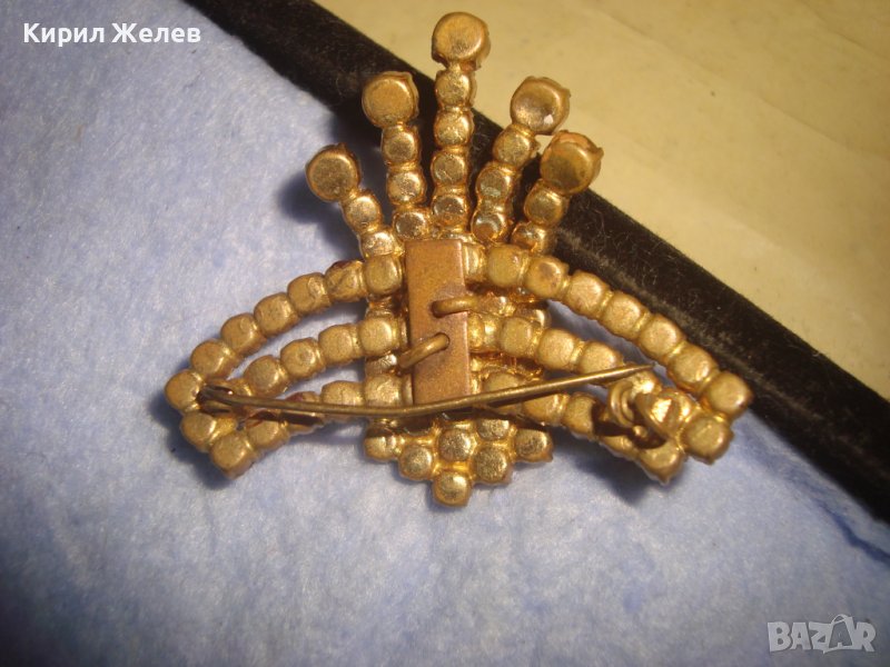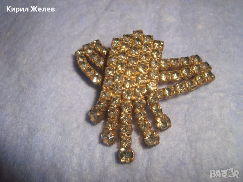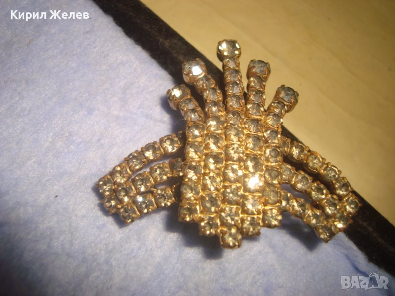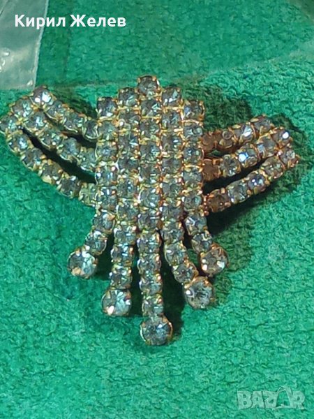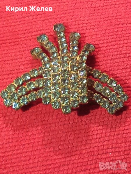 СТАРА ПОЗЛАТЕНА РЕТРО АРТ КРИСТАЛНА БРОНЗОВА БРОШКА с БОХЕМСКИ КРИСТАЛИ МАЙСТОРСКА ИЗРАБОТКА 29207