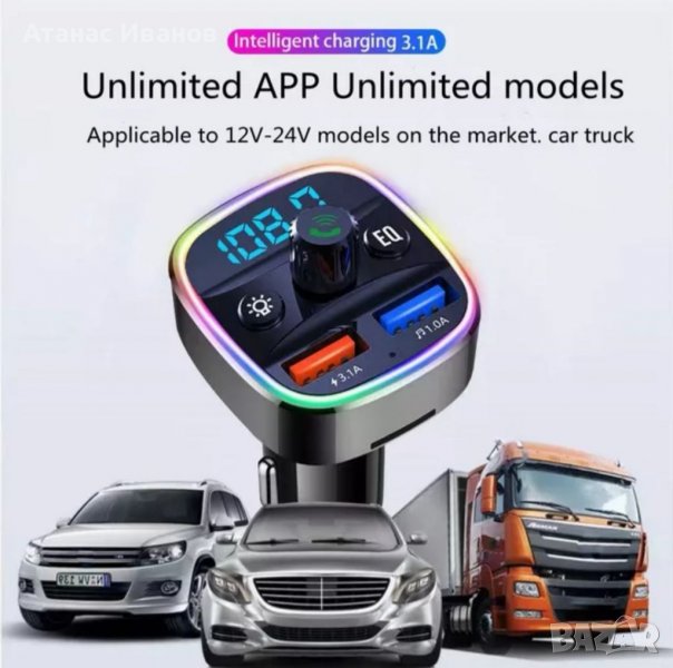 Качественни фм трансмитери хамелион с блутут и светещ ринг в избран от вас цвят.