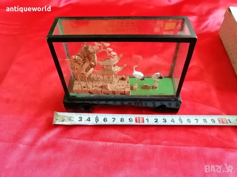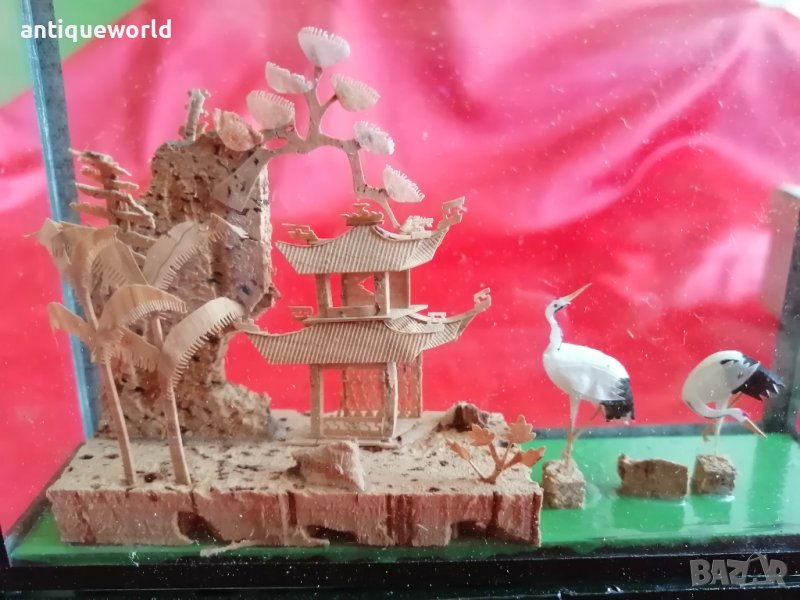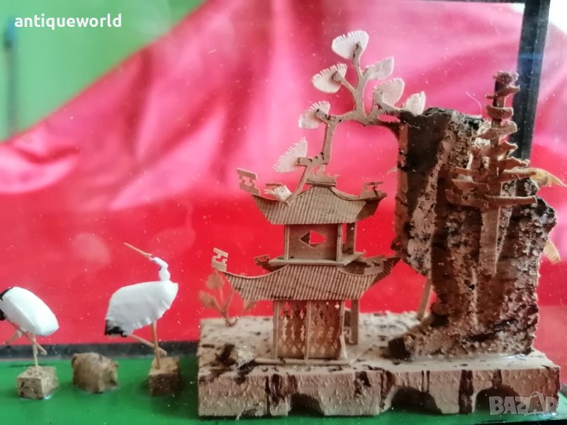 Много Красива Стара Китайска ДИОРАМА с Пагода , Hand Made . Ръчна финна дърворезба от Корк .Състоянието е видно.