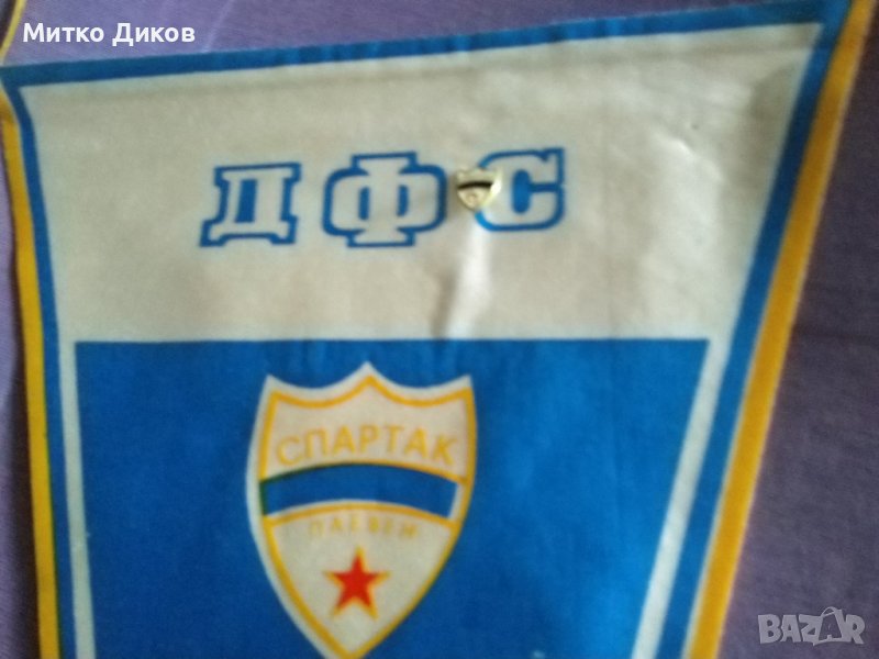 Спартак Плевен игрално флагче -отзад има ли знаме на България е игрално- от соца турнир Интертото със значка-отлично състояние-изпращам по еконт-по спиди