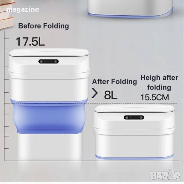 Сгъваемо смарт кошче за боклук със сензорен капак 17.5L
