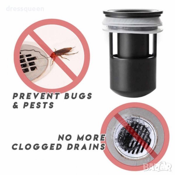 Поставя се директно в сифона на пода в банята. Ефективен начин да спрете лошите миризми в банята и да прекратите нашествието на насекоми от канализацията.