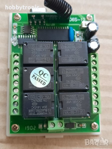 Комплект приемник с 6 релета и дистанционно управление с 6 бутона, без. батерия 9V.