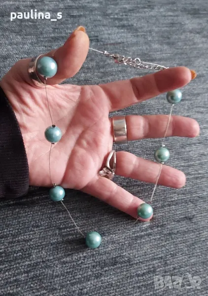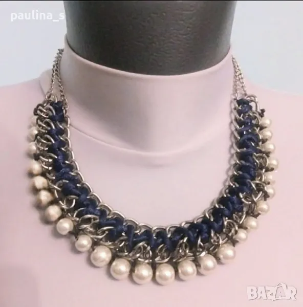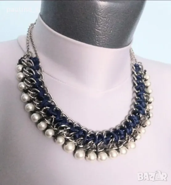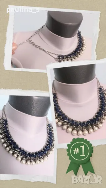 4️⃣ . Колие с перли, сребристи метални елементи и турско синя бижутерска лента. Цената е крайна, без пазарлъци 15 евро. Много красива комбинация от елементи в едно ефектно и приковаващо погледа бижу - колие с удължител.