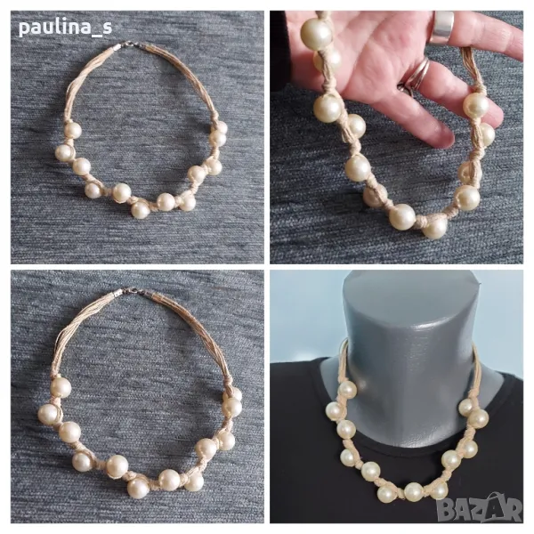 1️⃣ . Колаж / Колие тип чокър от кълчищени гръсти - CBD, с обезболяващ ефект за врата при шипове и други аномалии, бели артифициални перли, ръчна изработка, ново. Цената е крайна, без пазарлъци 10 евро