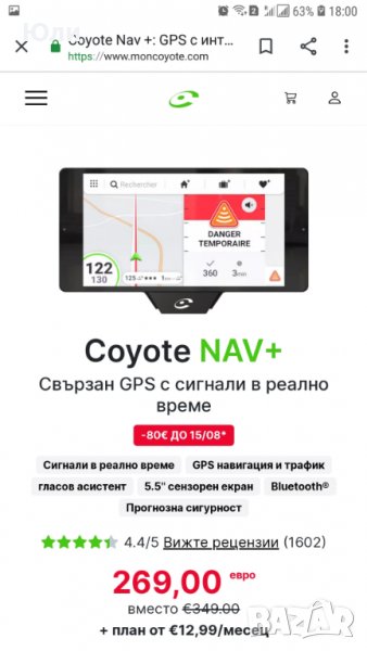 Продавам GPS навигация на френската марка Coyote. Карти на цяла Европа без Сърбия и България.Размер 5,9 екран тъчскрийн показва камери за скорост, полицейски засади.В комплекта има два кабела зарядно за запалката ,стойка за закрепване.Закупена от Франция