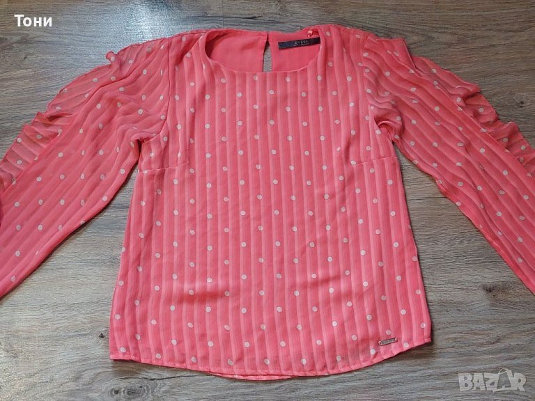 Дамска оригинална риза GUESS. По етикет ХС. Размери от мишница до мишница 44 см, от рамо до рамо 35 см, дължина на ръкава 60 см, дължина на ризата 57 см. Няма еластичност, с подплата. Няма забележки.