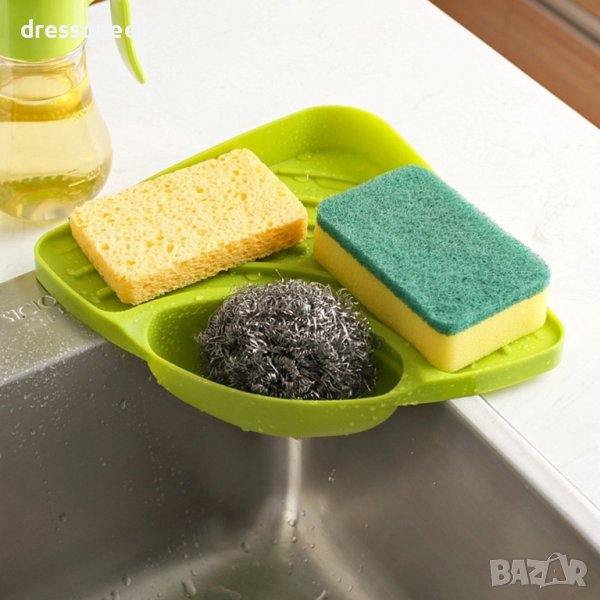Специалният дизайн с дренажен отвор на поставката е идеален за домакинските гъби, защото не задържа вода и е много лесен за почистване. Внесете ред в кухнята си много лесно и бързо!