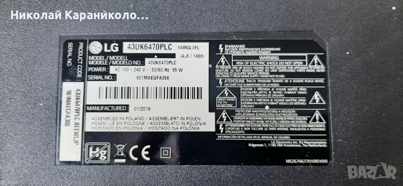 Продавам Power-EAX67209001(1.5),Main-EAX67872805(1.1),Лед-LG43D07-ZC31AG-04 тв.LG 43UK6470PLC