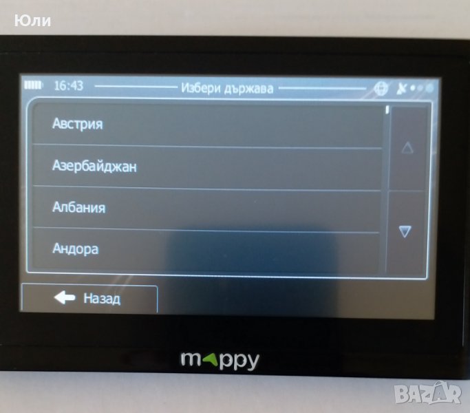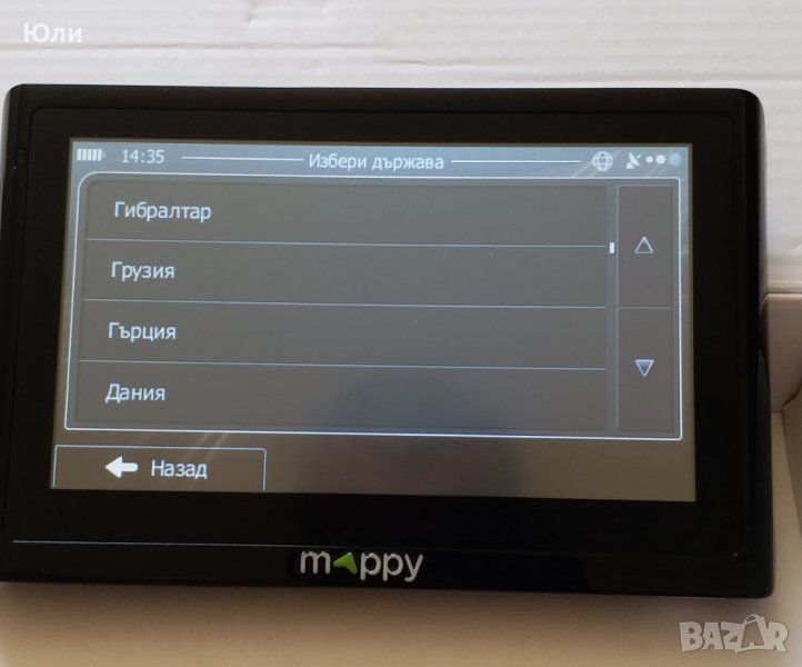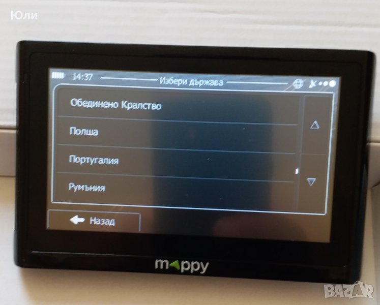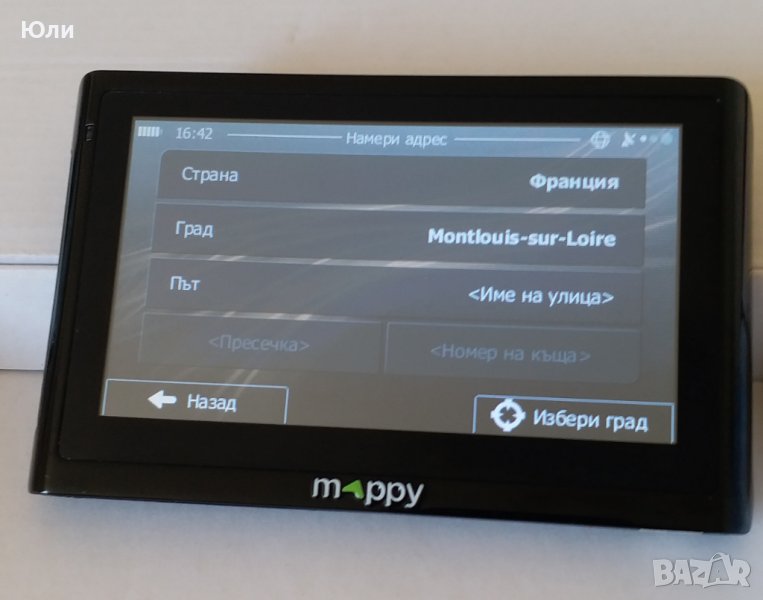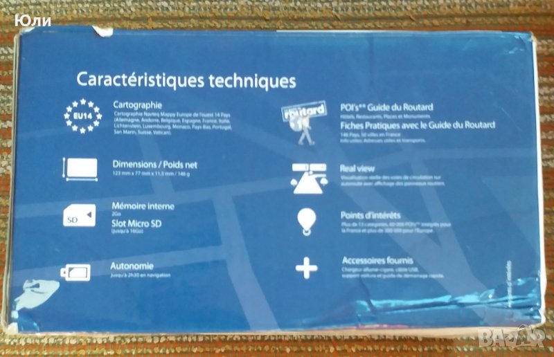 Продавам GPS навигация на френската марка Mappy.Карти на цяла Европа, обновени 2020г.Меню на български, гласови команди на български ,камери за скорост полицейски засади. В комплекта има зарядно,стойка за закрепване.Закупена от Франция