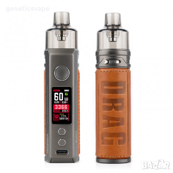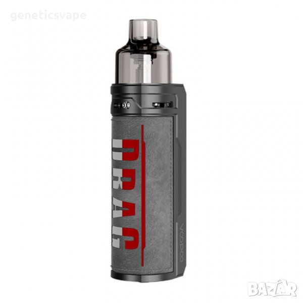 Voopoo Drag S 60W под системе е стилен и функционален мод, с кожено покритие, и издръжлива цинкова сплав, с мощност до 60W. Оборудван е с пълнител с вместимост 4.5 мл, съвместим с всички изпарителни глави от серията PnP, които предоставят едновременно страхотно усещане за вкус и огромни възможности за пара. DRAG S може да се използва в два режима на работа – Smart и RBA.