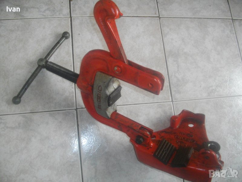 Масивно, голямо, колоритно тръбно менгеме/стяга за поставяне на тръби, оригинален професионален американски модел на РИДГИД.