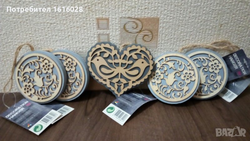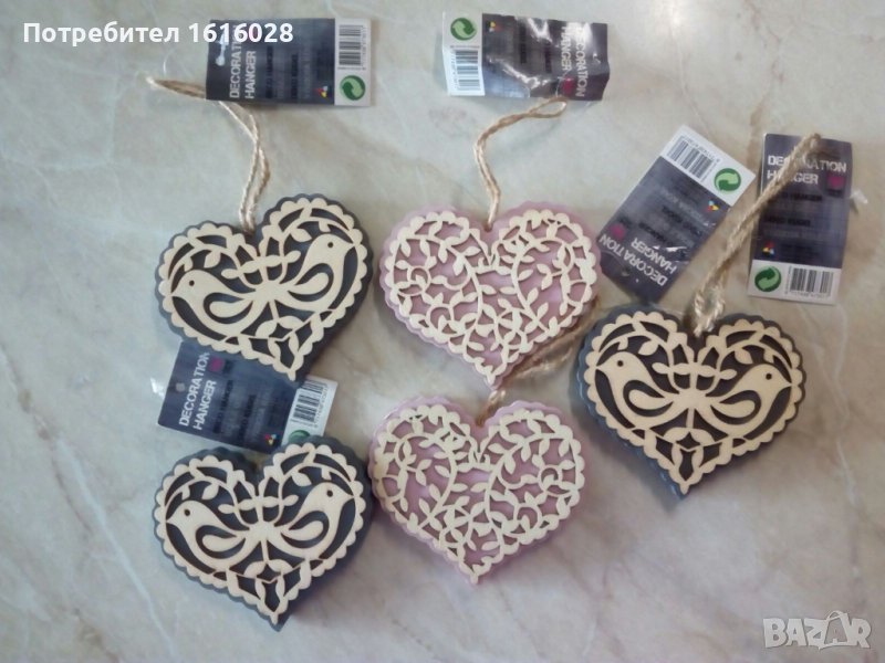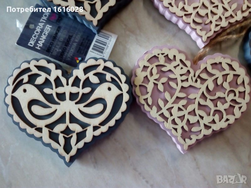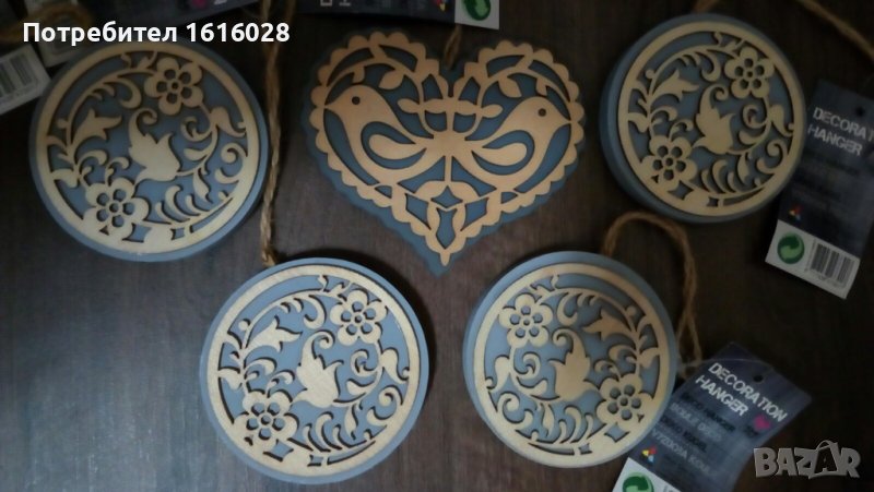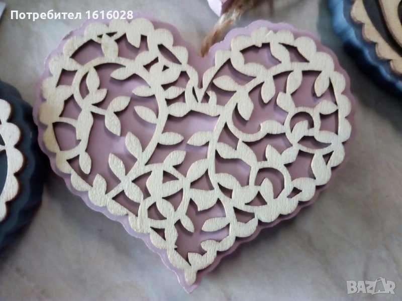 Нови дървенни фигурки сърца и кръгове с размери между 7 и 10 см.и ширина 1 см.Предлагат се в чист дървен вариант или изрисувани с различни техники и цветове по ваш избор,като може от двете страни да е изрисувано по различен начин и цветове.Коледна играчка 2 в 1.
