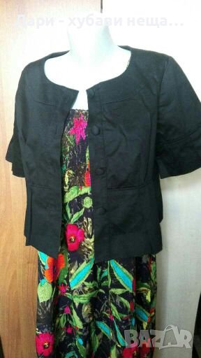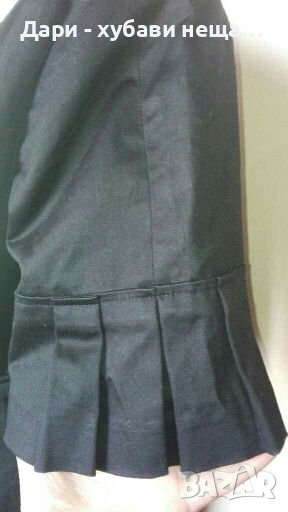 Много красиво и практично - подходящо за връхна дреха, в офиса, както и за повод.Има цялостен хастар, т.е и на ръкавите.Чисто ново, само липсва хартиения етикет.