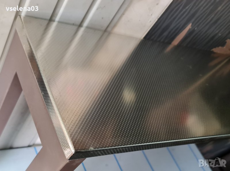 Масата е с луксозен плот от декоративна неръждаема стомана и качествена метална рамка.