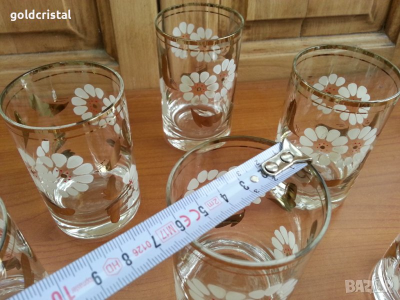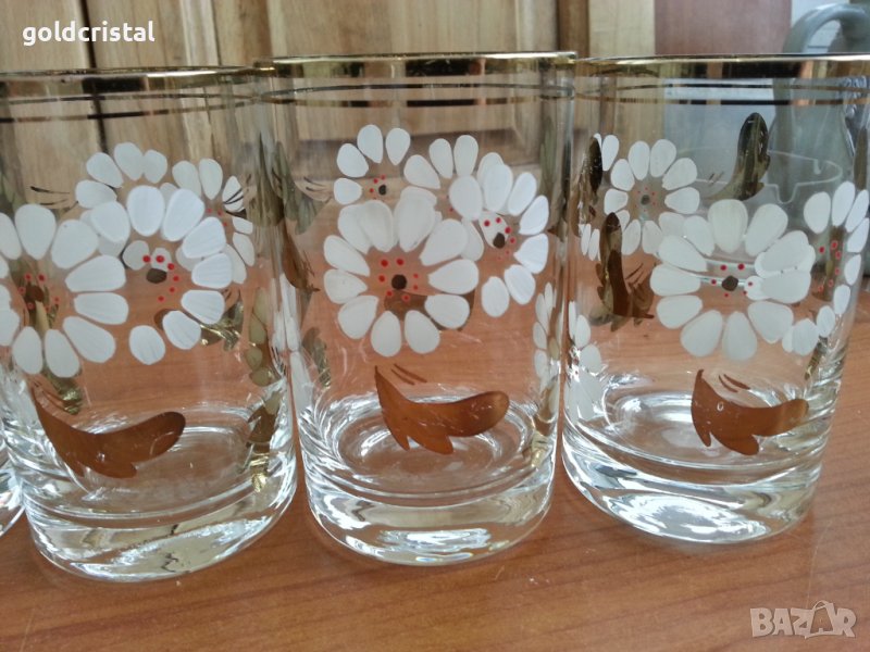 Стъклени чаши с позлата ръчно рисувани 6бр -85лв без забележки неизползвани сервиз комплект сет лот ретро арт декор винтидж колекция стари антикварни предмети обзавеждане за дома и семейството подходящи за подарък за ценители и колекционери