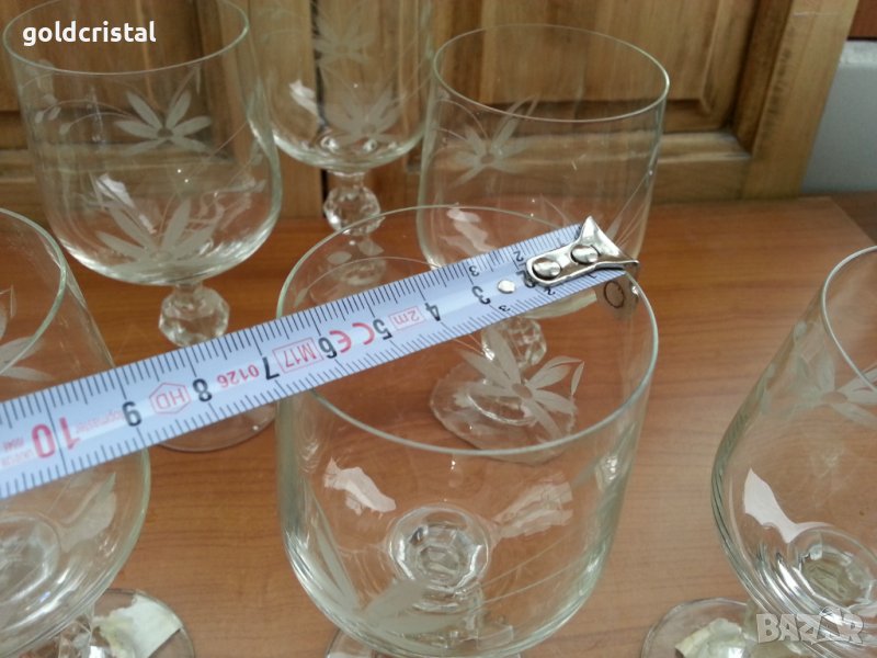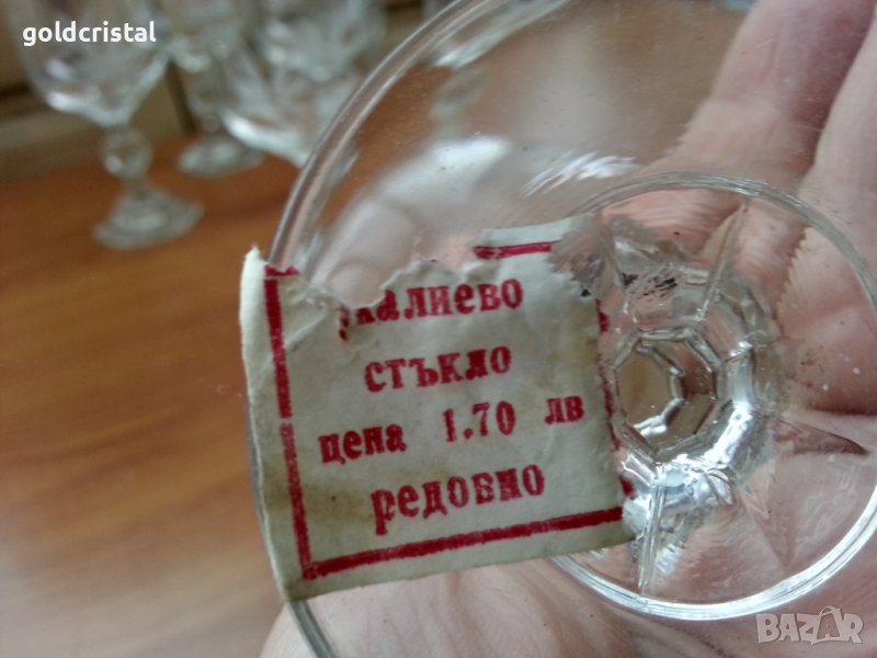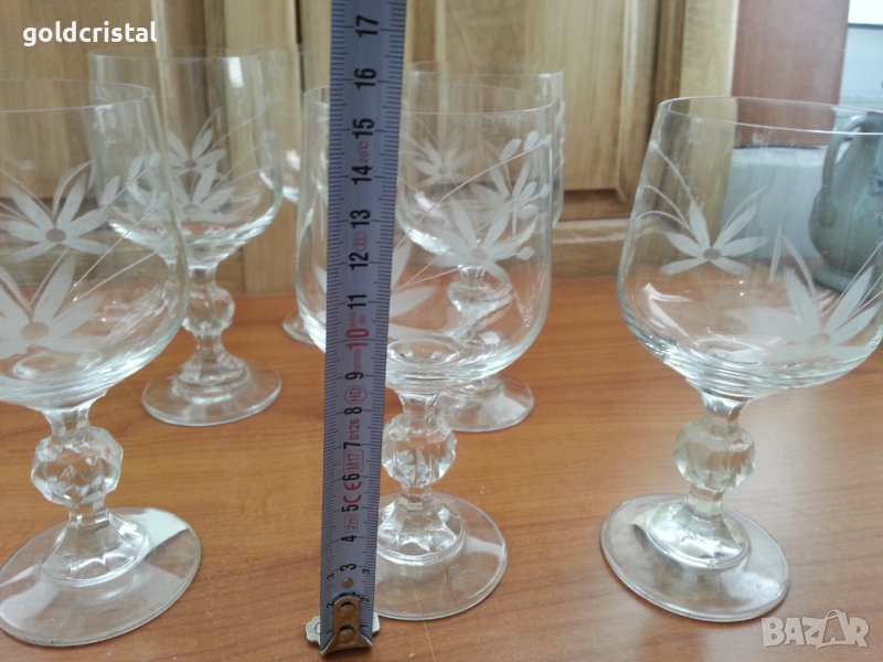 Ретро кристални чаши гравирани кристално калиево стъкло нови с етикет 150мл 6 бр без забележки сервиз комплект сет лот ретро арт декор винтидж колекция стари антикварни предмети обзавеждане за дома и семейството подходящи за подарък за ценители и колекционери
