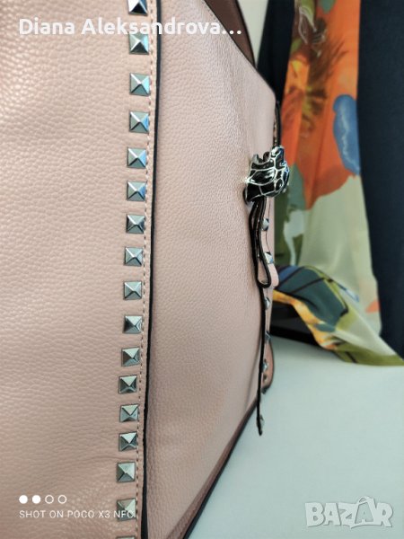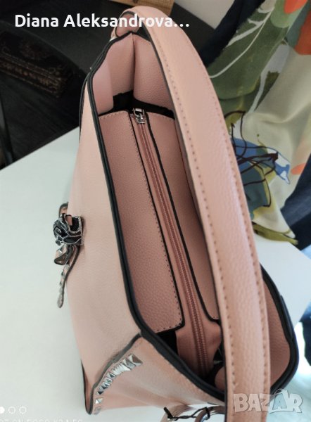Ежедневна дамска чанта, голям размер, в нежен розов цвят. Вътре е едно отделение, в което има джобчета за аксесоари. Има и допълнителна дълга дръжка.