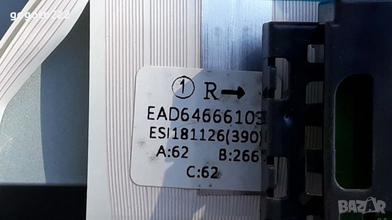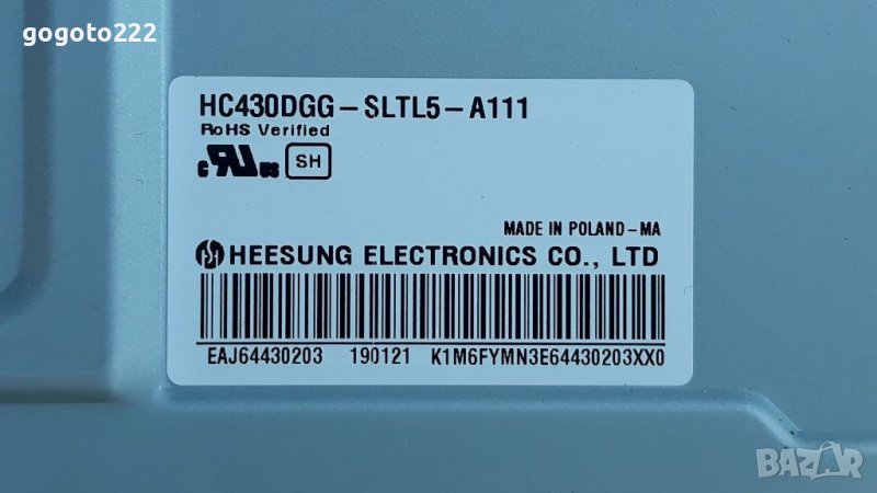 Телевизора е със счупен дисплей всичко останало работи. MAIN board EAX67872805 (1.1) цена 95 лева. POWER supply LGP43DJ-17U1 цена 50 лева. Матрица HC430DGG-SLT5-A111 cчупена . Кабел LVDS цена 10 лева. Подсветка LG43D07-ZC31AG-04 цена 40 лева. RF Module цена 15 лева. Говорители цена 10 лева. Бутон включване цена 15 лева. Стойка крачета два броя цена 20 лева.