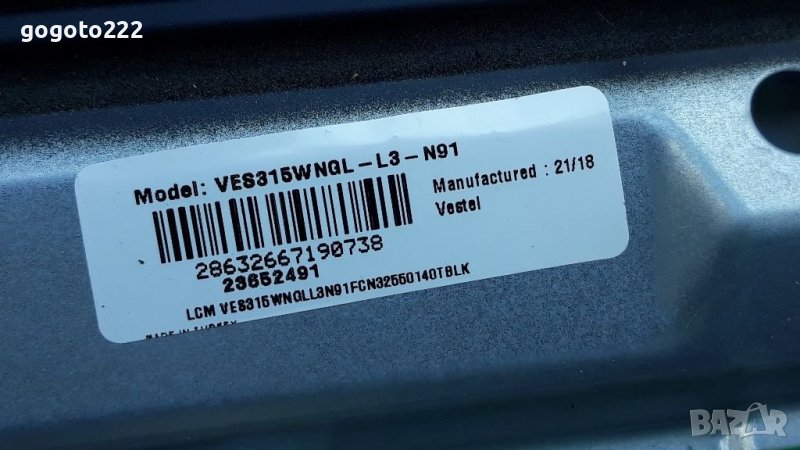 Телевизора е със счупен дисплей всичко останало работи. MAIN board 17MB140TC цена 40 лева продаден.. Матрица VES315WNQL-L3-N91 счупена. POWER supply IPS63 цена 35 лева. Подсветка цена 25 лева. Стойка крачета два броя цена 15 лева.