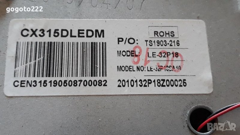 Телевизора е със счупен дисплей всичко останало работи. Main board TP.MT5510S.PB803 цена 50 лева продаден.Матрица CX315DLEDM счупена. Подсветка HL-00320A30-0501S-07 A1 цена 20 лева. T-con V320BJ8-Q01 цена 20 лева.