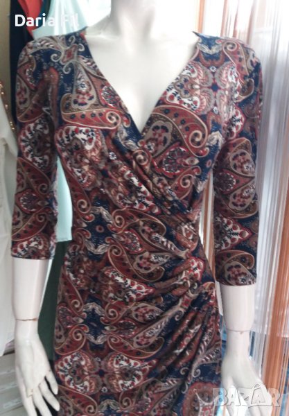 -20% Рокля в кафяво-сини пейсли принт цветове и набор около кръста → Обява 37350660