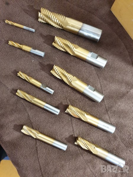 Продавам комплект 10 бр. HSS челно-цилиндрични, четириканални, 30° спирални фрези за груба обработка. Нови, не са работили. Тип „царевица“, с цилиндрична опашка 6/8/10/12/14/16/18/ 20/22/25 mm.