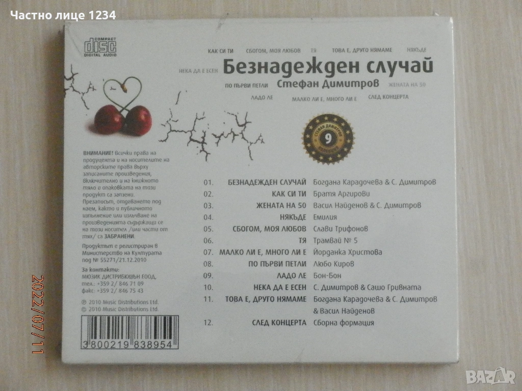 Брой 9 от поредицата от 14 диска с най-добрите песни на Стефан Димитров, издадени 2010г. - 2 евро