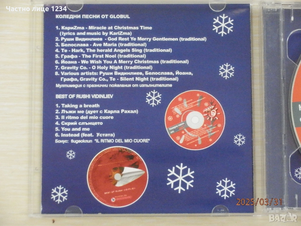 Стефан Димитров / Богдана Карадочева/ Коледни песни и Руши Виденлиев - най-доброто -  2CD, снимка 1 - CD дискове - 37354735 Стефан Димитров / Богдана Карадочева/ Коледни песни и Руши Виденлиев - най-доброто -  2CD, снимка 2 - CD дискове - 37354735 Стефан Димитров / Богдана Карадочева/ Коледни песни и Руши Виденлиев - най-доброто -  2CD, снимка 3 - CD дискове - 37354735 Стефан Димитров / Богдана Карадочева/ Коледни песни и Руши Виденлиев - най-доброто -  2CD, снимка 4 - CD дискове - 37354735 1/4