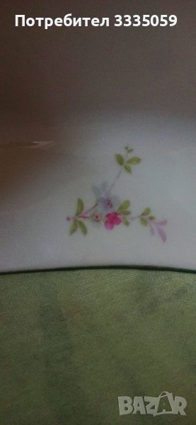 Квадратна купа 22.5 см. Kahla.Декор Ябълков цвят и зелен кант.Произведена 1937-1957 г. в Германия.Много лек порцелан.При интерес пишете на лично.За София е възможно лично предаване или Eконт за цялата страна.