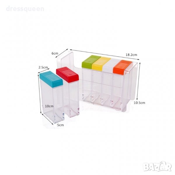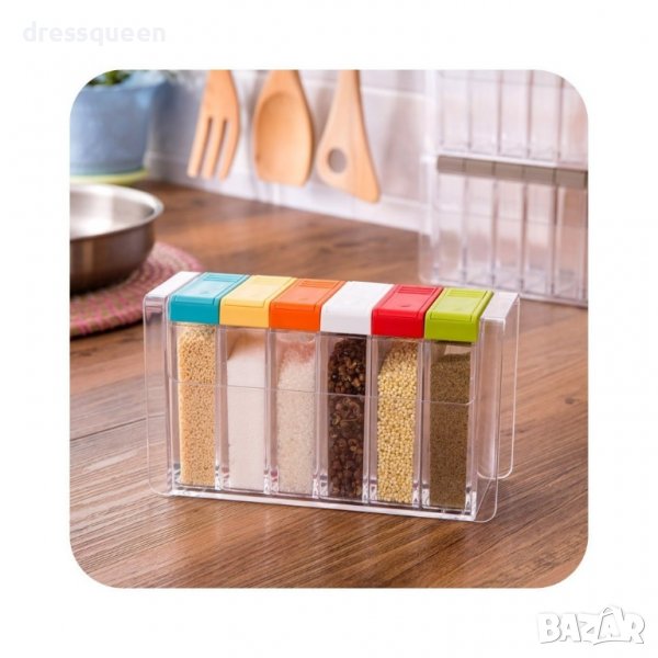 Комплекта включва: 6бр. контейнера за подправки 1бр. стойка