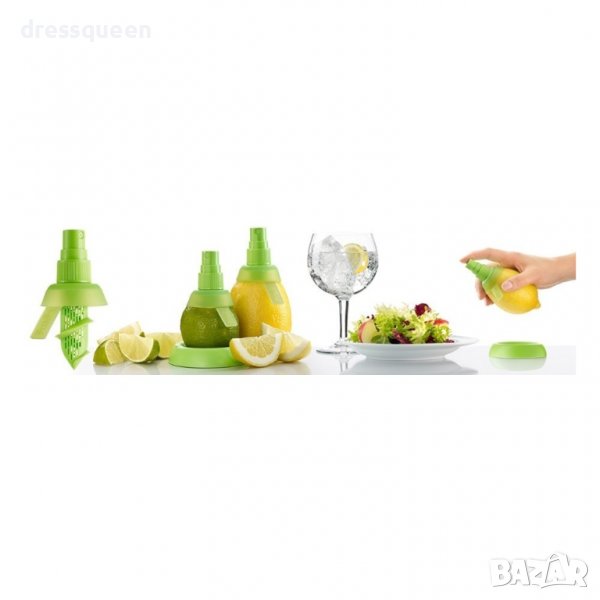 Просто трябва да размачкате малко цитрусовия плод, да отрежете единия му край,след това там да завиете този спрей и да го държите вертикално, докато започне да пръска. Така ще овкусите салатите, ястията и ще придадете на коктейлите си страхотен вкус- бързо, ефектно и лесно!