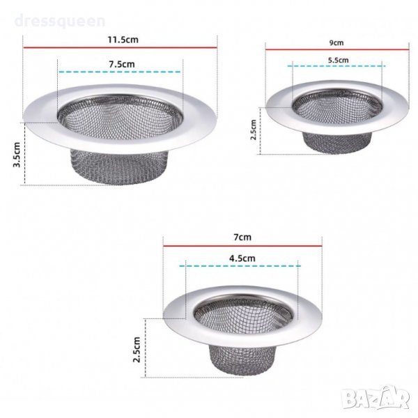 Предлагаме 3 размера цедки за мивка с диаметър на големия ринг 7, 9 и 11.5 см.