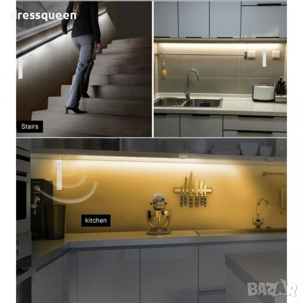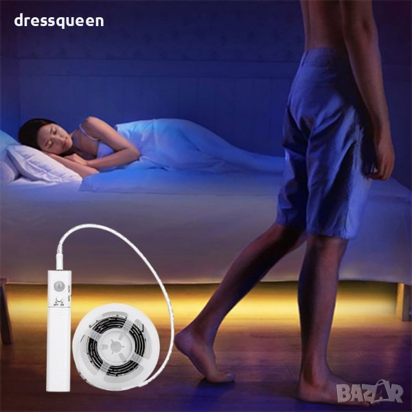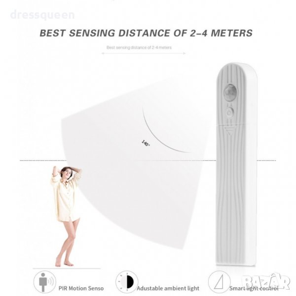 Датчикът за движение е оборудван с ключ за включване / изключване и система за превключване на потока, която позволява конфигуриране на работата на лентата между 2 режима на работа: ръчно включване (автоматично активиране) и автоматично включване (автоматично изключване след 15 секунди). С ъгъл на осветяване на светлината: 140 градуса.